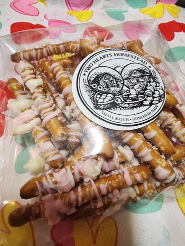At Two Hearts Homestead, we believe in the beauty of handcrafted items and baked goods. Every piece we create is a reflection of our passion for craftsmanship and attention to detail.